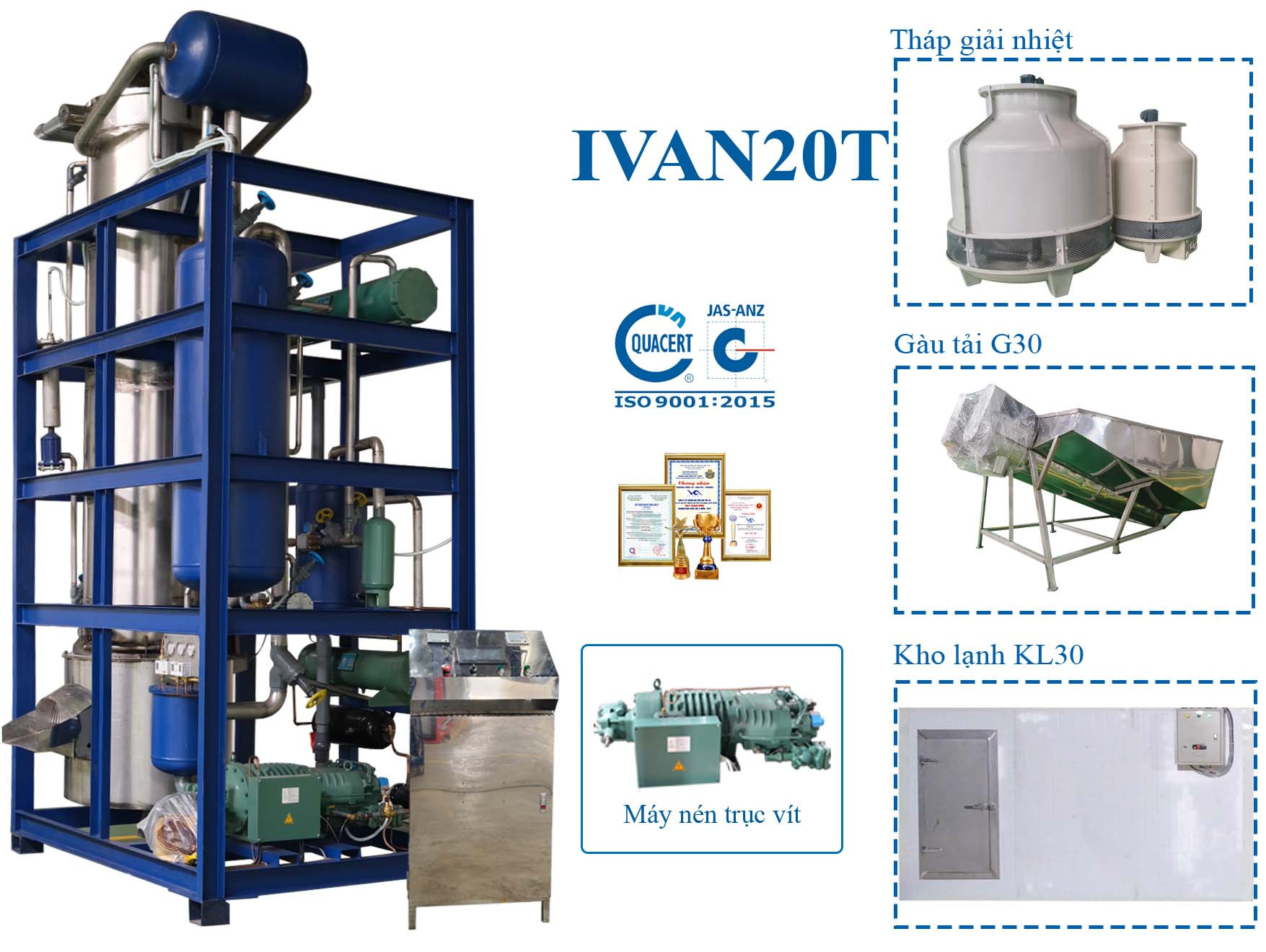 Trước đó là hệ thống bay hơi, máy nén và van tiết lưu nhằm giảm nhiệt và giảm áp suất nước, loại bỏ cặn, giữ nhiệt nước ở mức thấp…trong khi quá trình ngưng tụ đá đang diễn ra ở bình ngưng.