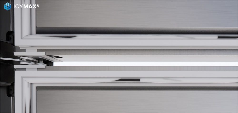 • Tay nắm âm và gioăng từ tính: Thiết kế kín, gọn, giúp đóng mở tủ nhẹ nhàng. Đảm bảo khả năng giữ nhiệt của Tủ bàn mát ICYMAX 1 cánh kính 900×600 tốt và không cản trở thao tác trong khu bếp đông người.