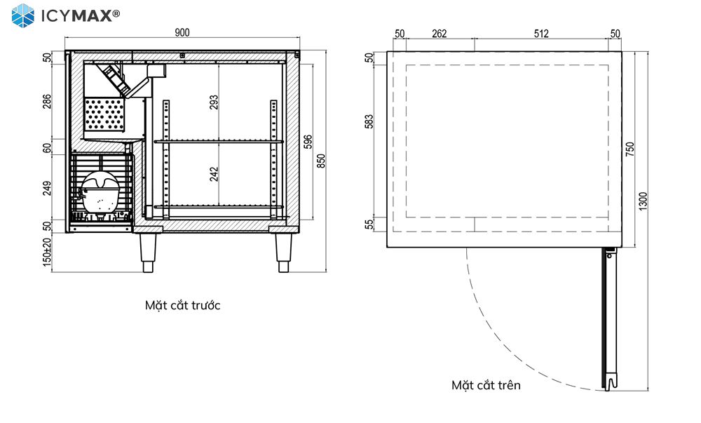 Bản vẽ 2D Tủ bàn mát ICYMAX 1 cánh kính 900×600