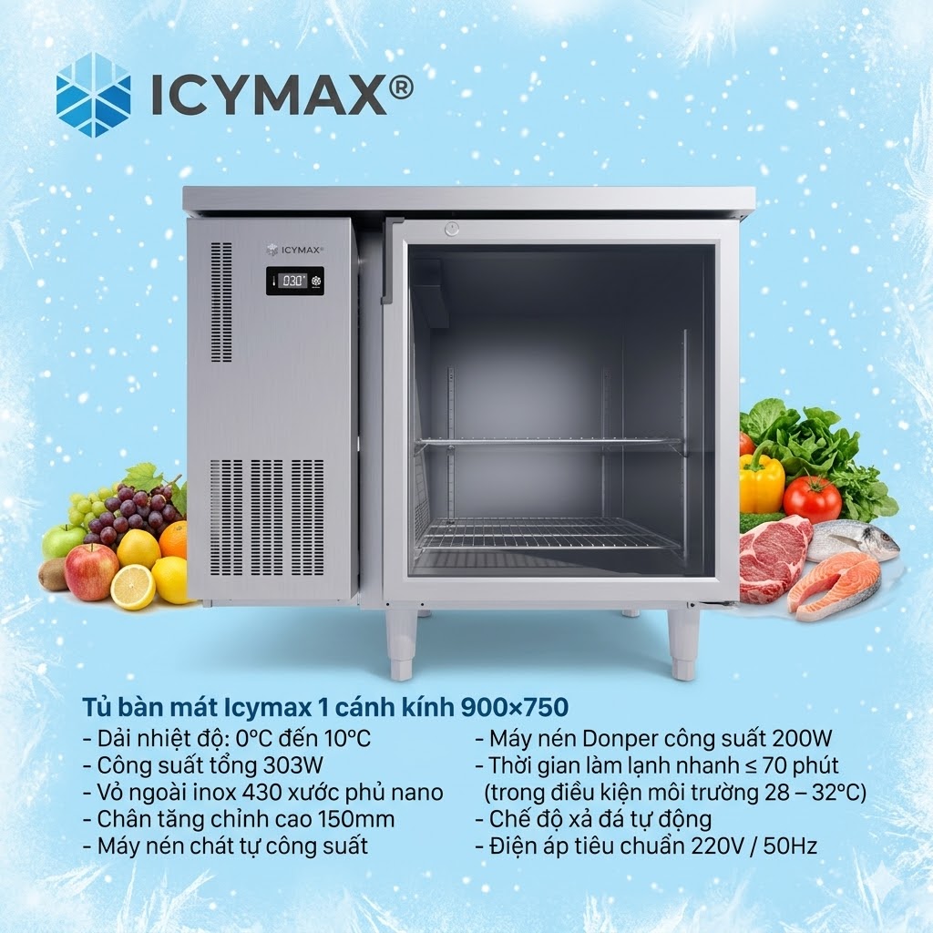 Đặc điểm sản phẩm Tủ bàn mát ICYMAX 1 cánh kính 900×750