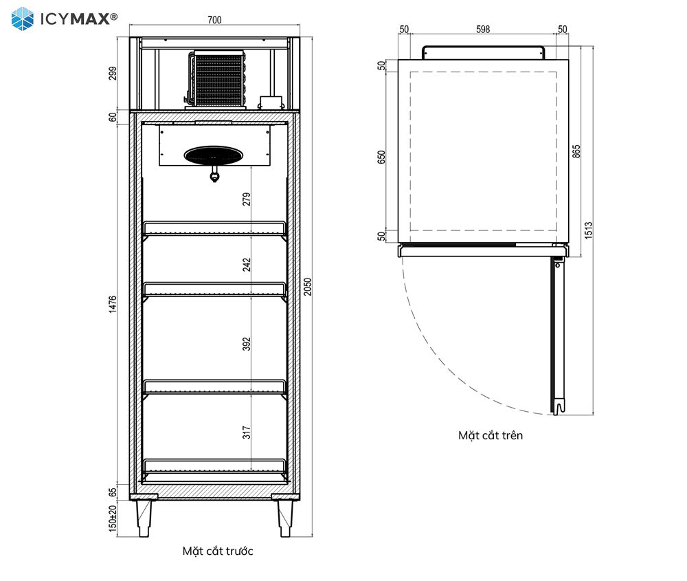 Đặc điểm sản phẩm TỦ MÁT ĐỨNG ICYMAX 2 CÁNH INOX 600L