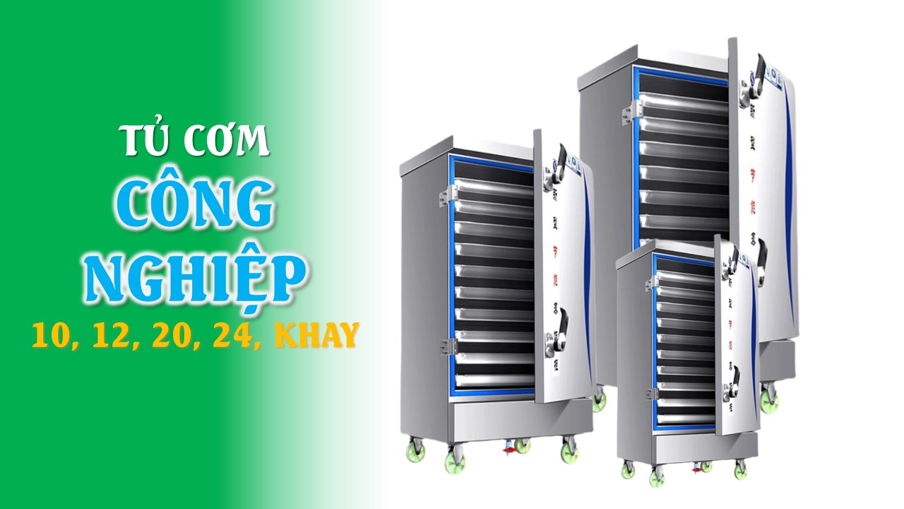 Tủ cơm công nghiệp dùng điện với dung tích 10, 15, 20 khay là thiết bị không thể thiếu trong các nhà hàng, khách sạn, bếp ăn công nghiệp, trường học, bệnh viện… Sản phẩm giúp nấu chín một lượng lớn gạo trong thời gian ngắn, đảm bảo cơm chín đều, thơm ngon và tiết kiệm nhiên liệu.
